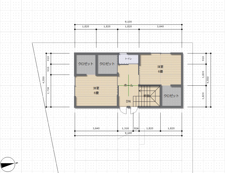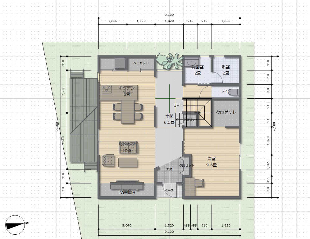 上下階全体的に、矩形のシンメトリーな間取りにすることで、構造耐力的に有利なおうちを創ることができます。